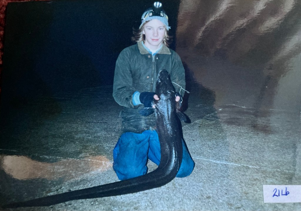 I have been a life member of the BCC since the late 80’s. To be a full member you have to catch a qualifying eel which from the shore is 25lb. I caught my qualifier way back in 1985 aged just 11 with this fish caught in Alderney of 27lb.