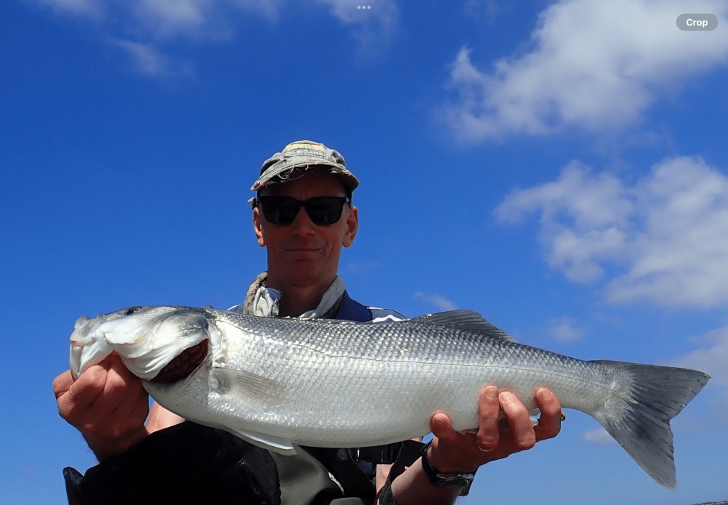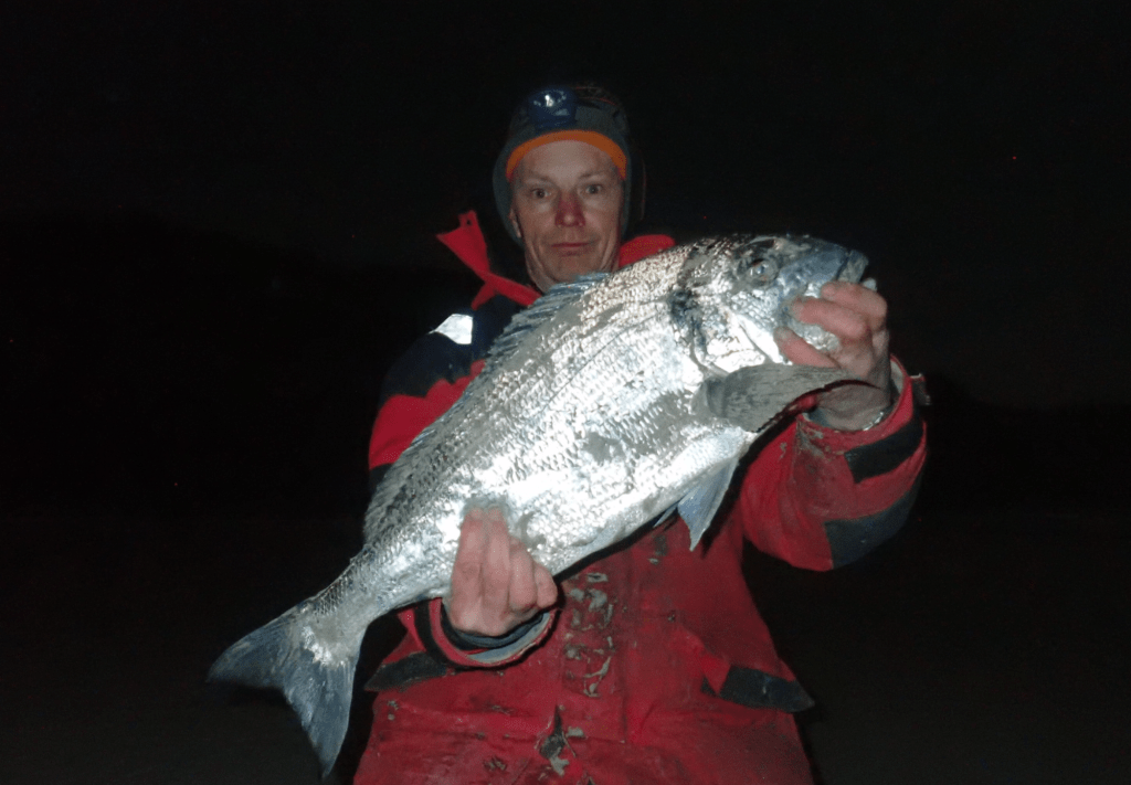 Due to the fishing being so slow I had some bait left so decided to nip out for an hour the following day and what a difference a day makes. I finished with 4 Giltheads & 4 Bass before I ran out of bait, all caught on 5lb line in about 2ft of water, fantastic fun. This was the pick of them just under 6lb and all safely returned.