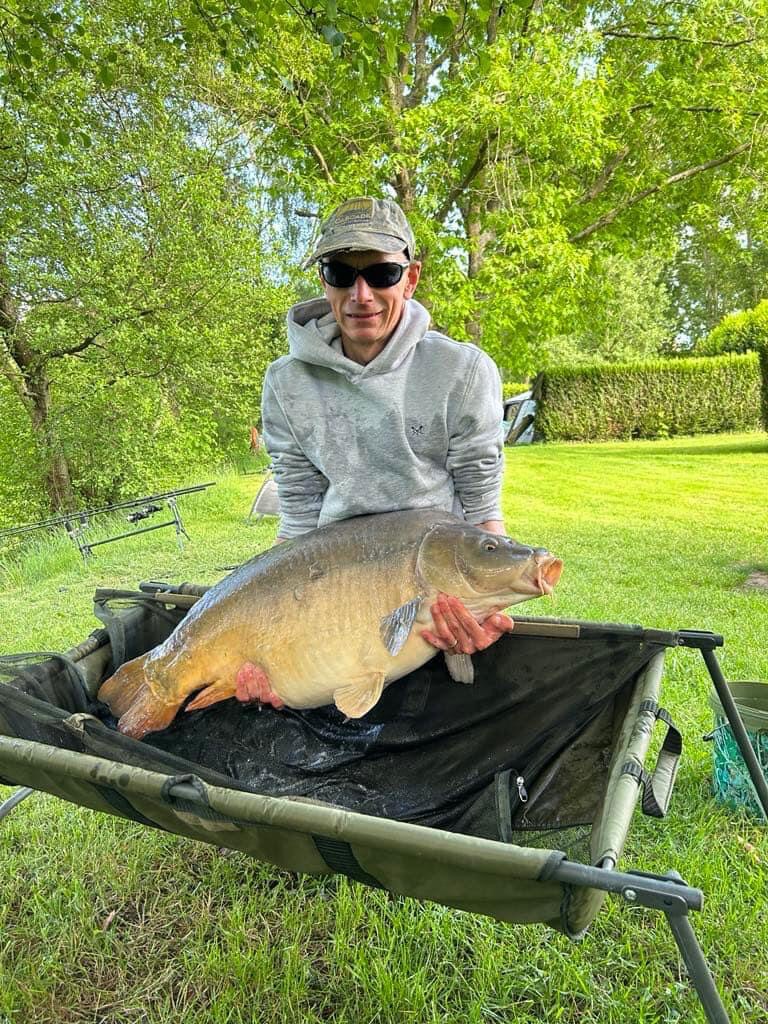 The end of May was our first camping trip of the year to Forest view campsite in France. Here you can camp lakeside and do a bit of carp fishing while your there. First day, first cast and first fish is Finlay, the biggest carp in the lake at 40-8 and a new PB.
