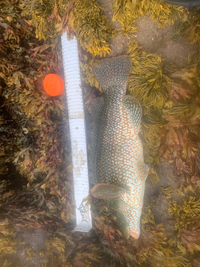 2 fish in 2 days is a great start and I was buzzing. Day 3 the plan was to spend the day trying for a Ballan Wrasse. Minimum size is 50cm, a tall order and I intended to move a few times through the day to try different marks. It didn’t really work out like that when 3rd drop at my first mark I had a fish of bang on 50cm.